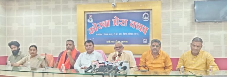 कोरबा।आगामी 28 मार्च से 1 अप्रैल 2026 तक आयोजित होने जा रही दिव्य श्री हनुमंत कथा को लेकर आज कोरबा प्रेस क्लब में एक महत्वपूर्ण प्रेस वार्ता आयोजित की गई। आयोजन समिति के पदाधिकारियों ने पत्रकारों को कार्यक्रम की विस्तृत जानकारी देते हुए इसे धार्मिक, सामाजिक और सांस्कृतिक दृष्टि से एक ऐतिहासिक आयोजन बताया।