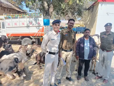 32 गौवंश को कुख्यात मवेशी तस्कर रब्बुल खान के चंगुल से पुलिस ने कराया मुक्त