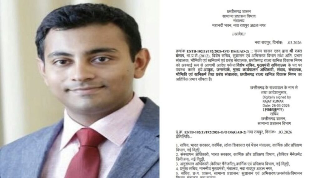 रायपुर। छत्तीसगढ़ की विष्णु देव साय सरकार ने प्रशासनिक स्तर पर एक बड़ा और महत्वपूर्ण निर्णय लिया है। 2012 बैच के वरिष्ठ आईएएस (IAS) अधिकारी रजत बंसल को मुख्यमंत्री सचिवालय में विशेष सचिव (Special Secretary) के पद पर तैनात किया गया है। राज्य शासन द्वारा गुरुवार, 26 मार्च को जारी इस आदेश को सत्ता के गलियारों में बेहद अहम माना जा रहा है।
