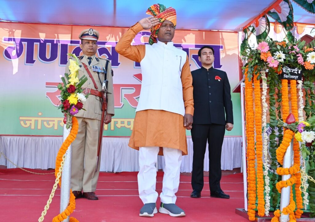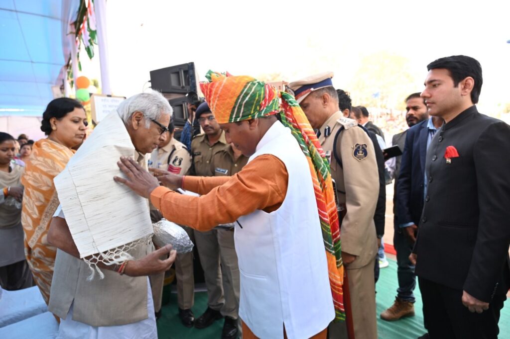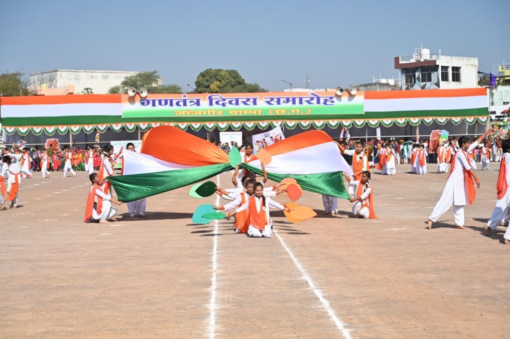 जांजगीर-चांपा 26 जनवरी 2025/ जिले में गणतंत्र दिवस समारोह हर्षाेल्लास के साथ मनाया गया। मुख्य अतिथि रायगढ़ लोकसभा सांसद राधेश्याम राठिया ने हाई स्कूल मैदान जांजगीर में आयोजित जिला स्तरीय कार्यक्रम में ध्वजारोहण कर परेड की सलामी ली। कार्यक्रम में हर्ष फायर के साथ शांति एवं उत्साह के प्रतीक गुब्बारे आसमान में छोड़े गए। मुख्य अतिथि ने परेड का निरीक्षण किया गया। उन्होंने माननीय मुख्यमंत्री के द्वारा आमनागरिको के नाम संदेश का वाचन किया। मुख्य अतिथि सांसद राधेश्याम राठिया ने शहीद परिवार के सदस्यों का शॉल व श्रीफल भेंटकर सम्मानित किया। उन्होंने उत्कृष्ट कार्य करने वाले विभिन्न विभागों के अधिकारियों कर्मचारियों को प्रशस्ति पत्र प्रदान कर सम्मानित किया।