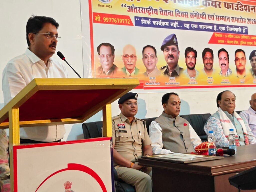 बिलासपुर।अंतर्राष्ट्रीय चेतना दिवस के अवसर पर बिलासपुर पुलिस और नागरिक संगठनों के द्वारा छत्तीसगढ़ में पहली बार “अंतर्राष्ट्रीय चेतना दिवस संगोष्ठी एवं सम्मान समारोह – 2026” का भव्य आयोजन नगर नागरिक संगठनों, NGOs और बिलासपुर पुलिस के संयुक्त तत्वाधान में पुलिस लाइन स्थित चेतना हॉल में SSP रजनेश सिंह के विशेष आतिथ्य एवं गरिमामयी उपस्थिति में संपन्न हुआ। यह आयोजन अपने आप में ऐतिहासिक रहा, जहां समाज, प्रशासन और विभिन्न संगठनों का अभूतपूर्व संगम देखने को मिला।