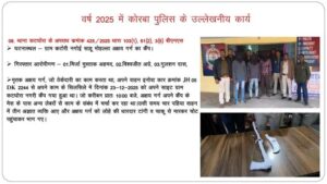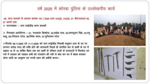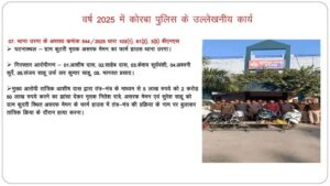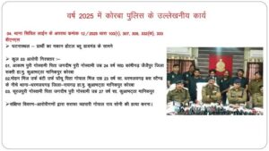 कोरबा जिला में पुलिस द्वारा वर्ष 2025 के दौरान अपराध नियंत्रण एवं त्वरित कार्यवाही के क्षेत्र में उल्लेखनीय सफलता प्राप्त की है। SP श्री तिवारी ने बताया की वर्ष 2025 में दर्ज कुल अपराधों में से लगभग 88 प्रतिशत मामलों का निराकरण किया गया है, जो पुलिस की सक्रियता और कार्यकुशलता को दर्शाता है।