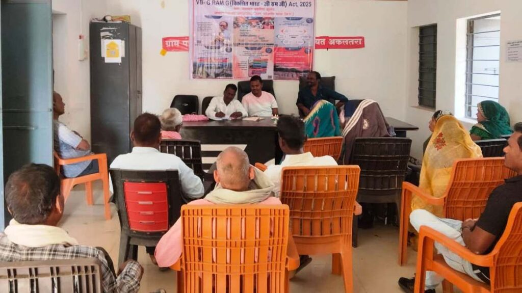 जांजगीर-चांपा, 26 दिसंबर / पंचायत संचालनालय छत्तीसगढ़, रायपुर के निर्देशानुसार तथा पंचायती राज मंत्रालय, भारत सरकार की नवीन योजना “विकसित भारत देश रोजगार एवं आजीविका मिशन (ग्रामीण) – वीबीजी राम जी के प्रचार-प्रसार एवं जनजागरूकता हेतु जिले के सभी ग्रामों में आज कलेक्टर जन्मेजय महोबे के निर्देशन एवं जिला पंचायत सीईओ गोकुल रावटे के मार्गदर्शन में विशेष ग्रामसभा का सफलतापूर्वक आयोजन किया गया। इस विशेष ग्रामसभा में ग्राम स्तर पर व्यापक सहभागिता देखने को मिली, जिसमें ग्रामीणजन, श्रमिक, महिलाएं, अनुसूचित जाति-जनजाति परिवार एवं अन्य कमजोर वर्गों ने उत्साहपूर्वक भाग लिया।ग्रामसभाओं के दौरान वीबीजी राम जी अधिनियम के विभिन्न प्रावधानों, इसकी प्रमुख विशेषताओं तथा विकसित भारत 2047 के राष्ट्रीय विजन पर विस्तार से चर्चा की गई। ग्रामीणों को योजना से जुड़ी जानकारी देने के साथ-साथ अधिनियम की प्रमुख विशेषताओं की मुद्रित प्रतियां भी वितरित की गईं। जनपद पंचायत एवं ग्राम पंचायतों द्वारा स्थानीय आवश्यकताओं के अनुरूप अन्य विषयों को भी ग्रामसभा के एजेंडे में शामिल किया गया। आयोजन में संबंधित विभागों के विकासखंड स्तर के मैदानी एवं क्षेत्रीय अधिकारी-कर्मचारी उपस्थित रहे और ग्रामीणों को योजनाओं से संबंधित आवश्यक जानकारी प्रदान की।