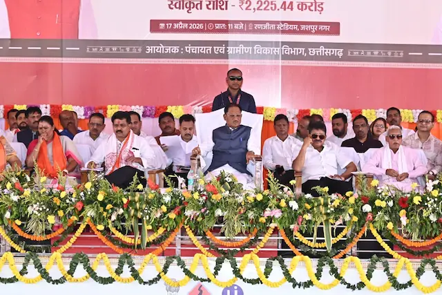 जशपुरनगर 18 अप्रैल 2026/ मुख्यमंत्री विष्णुदेव साय ने आज रणजीता स्टेडियम में आयोजित कार्यक्रम में ग्राम पंचायत स्तर पर नागरिक सुविधाओं की उपलब्धता सुनिश्चित करने की दिशा में एक महत्वपूर्ण पहल करते हुए 375 अटल डिजिटल सुविधा केंद्र भवनों का लोकार्पण किया। इस अवसर पर कार्यक्रम की अध्यक्षता कर रहे उप मुख्यमंत्री  विजय शर्मा, पद्मश्री जागेश्वर यादव, विधायक गोमती साय और रायमुनी भगत मौजूद रहे।