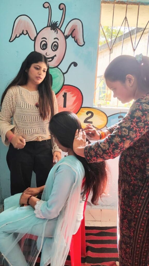 जांजगीर-चांपा 31 दिसम्बर/ कलेक्टर जन्मेजय महोबे के निर्देशन में महिलाओं, बालिकाओं में कौशल विकास करने एवं आर्थिक रूप से सक्षम बनाने तथा समान अवसर एवं भागीदारी प्रत्येक बिटिया हो सक्षम थीम पर विकासखण्ड बम्हनीडीह अंतर्गत ग्राम-हथनेवरा आंगनबाड़ी केन्द्र 04 में 15 दिवसीय ब्युटी पार्लर प्रशिक्षण का आयोजन किया गया।