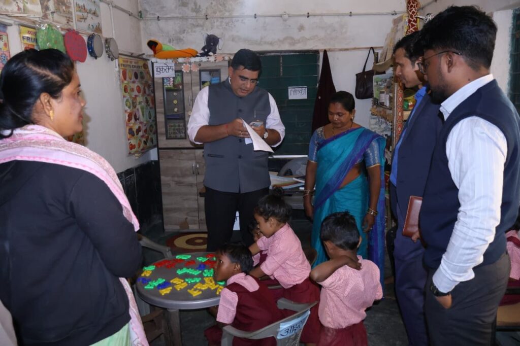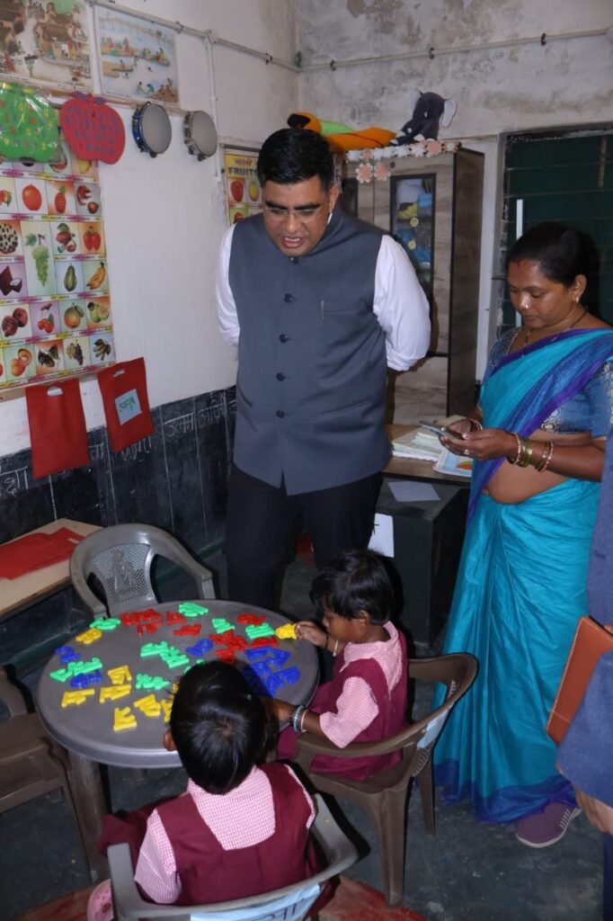 आमाखोखरा के आंगनबाड़ी केंद्र का निरीक्षण, बच्चों से संवाद, दी शाबाशी