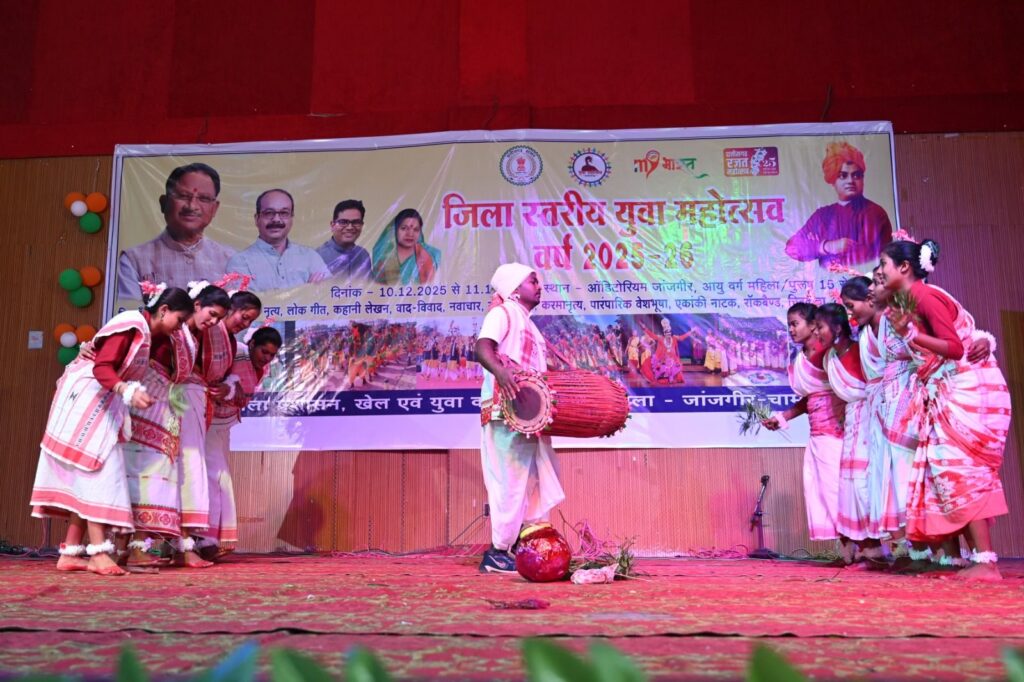 दो दिवसीय युवा महोत्सव 10 से 11 दिसम्बर 2025 तक आयोजित हो रहा है, जिसमें 15 से 29 वर्ष आयु वर्ग के महिला एवं पुरुष प्रतिभागी उत्साहपूर्वक भाग ले रहे हैं। जिले के विभिन्न क्षेत्रों से आए प्रतिभाशाली युवाओं ने पारंपरिक कला, संस्कृति और सृजनात्मक कौशल का उत्कृष्ट प्रदर्शन किया। कार्यक्रम के दौरान लोक नृत्य, पंथी नृत्य, सुआ नृत्य, लोक गीत, कहानी लेखन, वाद-विवाद, नवाचार, राउत नाचा, करमा नृत्य, पारंपरिक वेशभूषा, एकांकी नाटक, रॉक बैण्ड, चित्रकला, कविता लेखन जैसे विभिन्न विधाओं में प्रतिभागियों ने अपने कला का प्रदर्शन किया। महोत्सव के समापन सत्र में सभी विधाओं के विजेताओं एवं प्रतिभागियों को प्रशस्ति पत्र से सम्मानित किया गया।