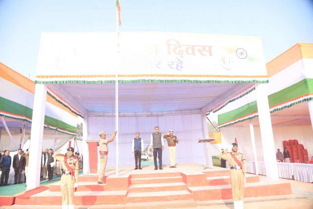 अम्बिकापुर 24 जनवरी 2026/  जिले में गणतंत्र दिवस 2026 समारोह का आयोजन पीजी कॉलेज ग्राउण्ड अम्बिकापुर में किया जाएगा। जिला स्तरीय गणतंत्र दिवस समारोह में मुख्य अतिथि छत्तीसगढ़ शासन के उप मुख्यमंत्री तथा गृह एवं जेल, पंचायत एवं ग्रामीण विकास, विज्ञान एवं प्रौद्योगिकी विभाग मंत्री विजय शर्मा ध्वजारोहण करेंगे व परेड की सलामी लेंगे। समारोह का फाइनल रिहर्सल शनिवार को पीजी कॉलेज ग्राउंड में सम्पन्न हुआ। तैयारियों का जायजा लेते हुए कलेक्टर अजीत वसंत और पुलिस अधीक्षक राजेश अग्रवाल ने संयुक्त रूप से गणतंत्र दिवस मुख्य समारोह के फाइनल रिहर्सल का निरीक्षण किया।
