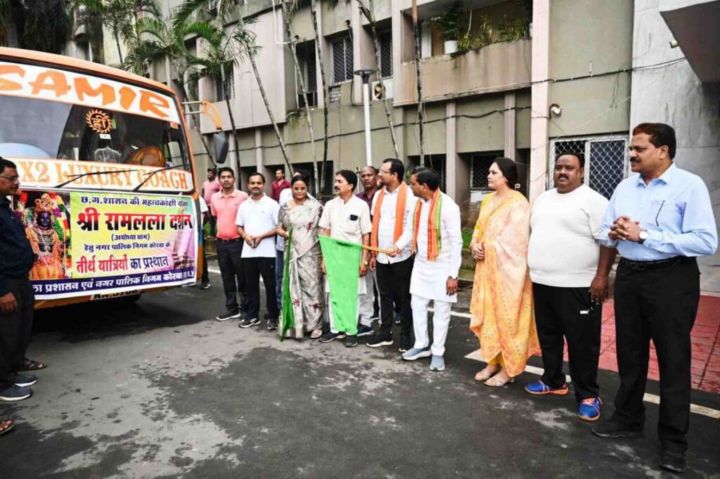 कोरबा 20 अगस्त 2025।महापौर संजूदेवी राजपूत ने आज श्री रामलला दर्शन योजना के तहत 35 तीर्थ यात्रियों के दल को पवित्र अयोध्याधाम के लिए साकेत भवन से रवाना किया। उन्होने तीर्थ यात्री बस को हरी झण्डी दिखाई तथा तीर्थ यात्रियों को तिलक लगाकर, पुष्पमाला पहना कर उन्हें अपनी शुभकामनाएं दी।