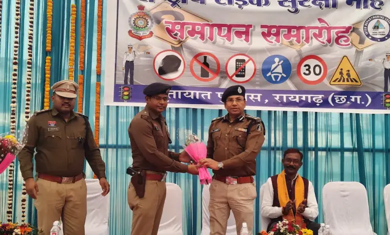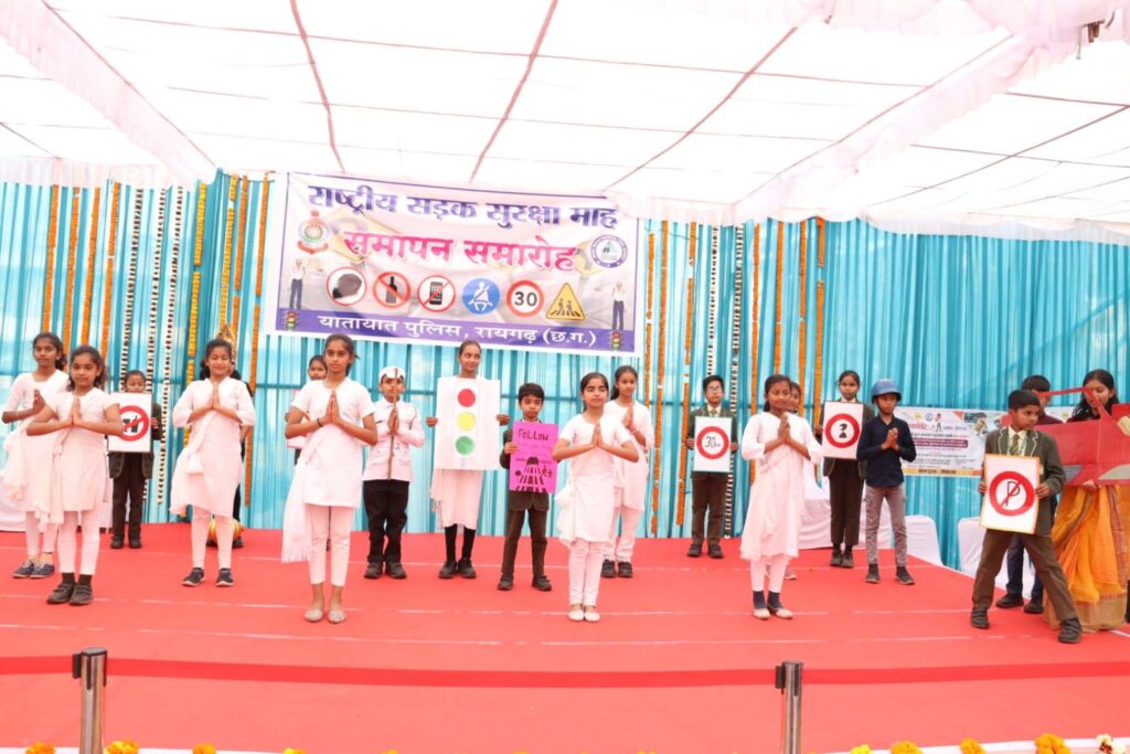 रायगढ़, 31 जनवरी। सड़क दुर्घटनाओं में कमी लाने तथा आम नागरिकों को यातायात नियमों के प्रति जागरूक करने के उद्देश्य से जिले में 01.01.2026 से 31.01.2026 तक मनाए गए राष्ट्रीय सड़क सुरक्षा माह का आज पुलिस सामुदायिक भवन परिसर में समापन किया गया। समापन कार्यक्रम में रायगढ़ पुलिस द्वारा आयोजित विभिन्न जागरूकता गतिविधियों में बढ़-चढ़कर हिस्सा लेने वाले स्कूली बच्चों को अतिथियों द्वारा पुरस्कार एवं प्रशस्ति पत्र देकर सम्मानित किया गया। साथ ही कार्यक्रम को सफल बनाने में सहभागी रहे शासकीय एवं गैर शासकीय संस्थाओं का जिला पुलिस द्वारा आभार व्यक्त किया गया।