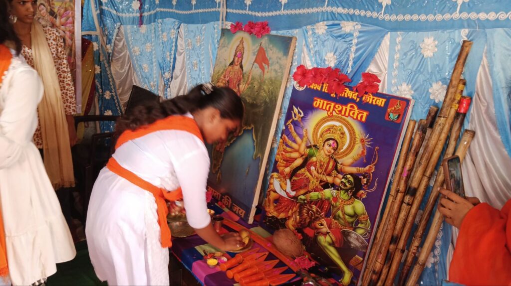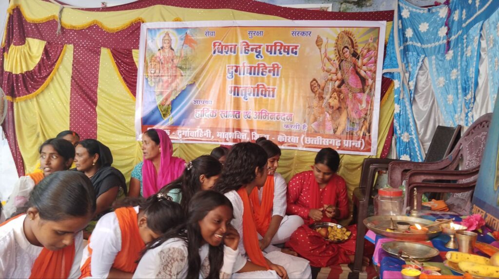 कोरबा।आज के ही दिन आश्विन शुक्ल पक्ष अष्टमी दुर्गा अष्टमी के दिन ही संवत 2041(सन 1991) में मातृशक्ति दुर्गा वाहिनी की स्थापना दीदी माता साध्वी ऋतंभरा जी के द्वारा किया गया था। विश्व हिंदू परिषद के द्वारा मातृशक्ति, दुर्गा वाहिनी का उद्देश्य धार्मिक और सांस्कृतिक कार्यों की दिए महिलाओं को प्रेरित करना और महिलाओं को शारीरिक, मानसिक रूप से प्रबल बनाना है इसी उद्देश्य की पूर्ति हेतु प्रतिवर्ष दुर्गा अष्टमी के दिन मातृशक्ति दुर्गा वाहिनी के द्वारा स्थापना दिवस मनाया जाता है और आज इसी कड़ी में मैगजीन भाटा पंप हाउस में दुर्गा वाहिनी की स्थापना दिवस मनाया गया।