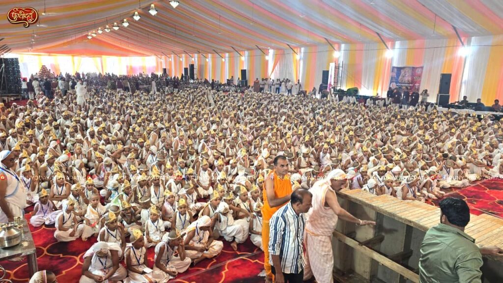 देशभर से आए 3665 बालक, अपने माता-पिता और रिश्तेदारों के साथ नई धोती-दुपट्टे में, गाजे-बाजे के बीच, अष्टद्रव्य की थाली लिए, जब कार्यक्रम स्थल की ओर बढ़े, तो वह दृश्य अविस्मरणीय बन गया। सभी बच्चे घर से मुंडन कराकर आए थे, उनके सिर पर सुधा सूर्य की किरणें चमक रही थीं। बच्चों के साथ उनकी मां, पिता, भाई, बहन और रिश्तेदार भी थे। सभी के भोजन और ठहरने की व्यवस्था दर्शनोदय तीर्थ क्षेत्र कमेटी द्वारा अत्यंत सुव्यवस्थित ढंग से की गई थी।