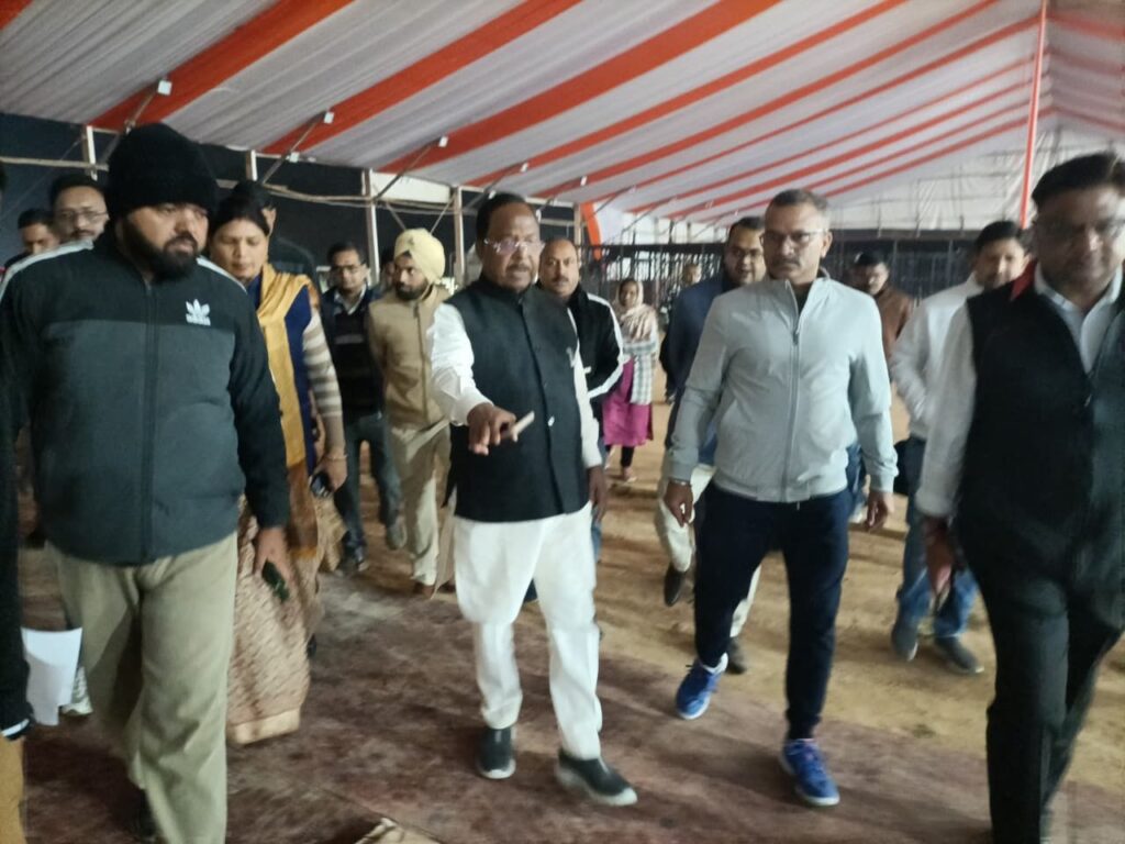 अम्बिकापुर,17 नवंबर 2025/ राष्ट्रपति श्रीमती द्रौपदी मुर्मु के 20 नवंबर 2025 को प्रस्तावित अम्बिकापुर दौरे को लेकर छत्तीसगढ़ शासन के आदिम जाति विकास, कृषि विकास एवं किसान कल्याण, जैव प्रौद्योगिकी, मछलीपालन एवं पशुधन विकास विभाग के मंत्री श्री रामविचार नेताम ने कार्यक्रम स्थल पीजी कॉलेज ग्राउंड पहुंचकर तैयारियों का निरीक्षण किया।