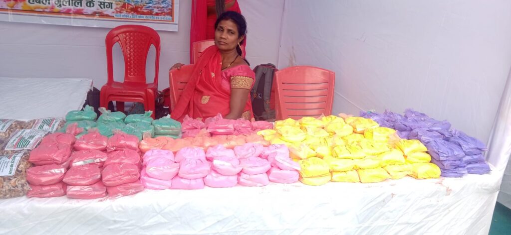 दूसरे जिले में भी कर रही हैं समूह की महिलाएं हर्बल गुलाल का विक्रय